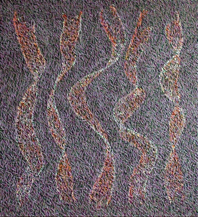 Beeldend kunstenaar Roland Broekhuis is gefascineerd door de energie die aan het bestaan ten grondslag ligt en zich op allerlei manieren manifesteert. Op moleculair niveau: krioelende cellen waarin zich raadselachtige processen afspelen. Maar evengoed in de sociale interactie tussen mensen en culturen. De doeken met hun indringende kleuren en het relief van de talloze streepjes verf maken al deze dynamieken tastbaar. Ze roepen vitaliteit op en tegelijk verstilling, ze dagen uit en brengen tot rust, om niet te zeggen troost.